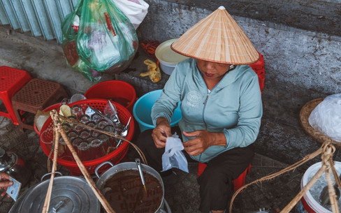 People ask me what kind of shots I'm after and I usually say "the in-between moments." Not the posed smile, not the dramatic action the bit in the middle. A vendor counting change with one hand while talking to someone else. The moment a customer tilts their head considering a price. The split second where two strangers share a laugh over something I wasn't quick enough to catch. Money exchanges are particularly interesting to photograph. There's a vulnerability to it hands open, notes changing, the tiny pause of calculation. Vietnamese markets are almost entirely cash. You see everything the texture of worn notes, the speed of an experienced vendor making change without looking, the occasional back-and-forth haggling that's theatrical and good-humoured and completely serious at the same time.